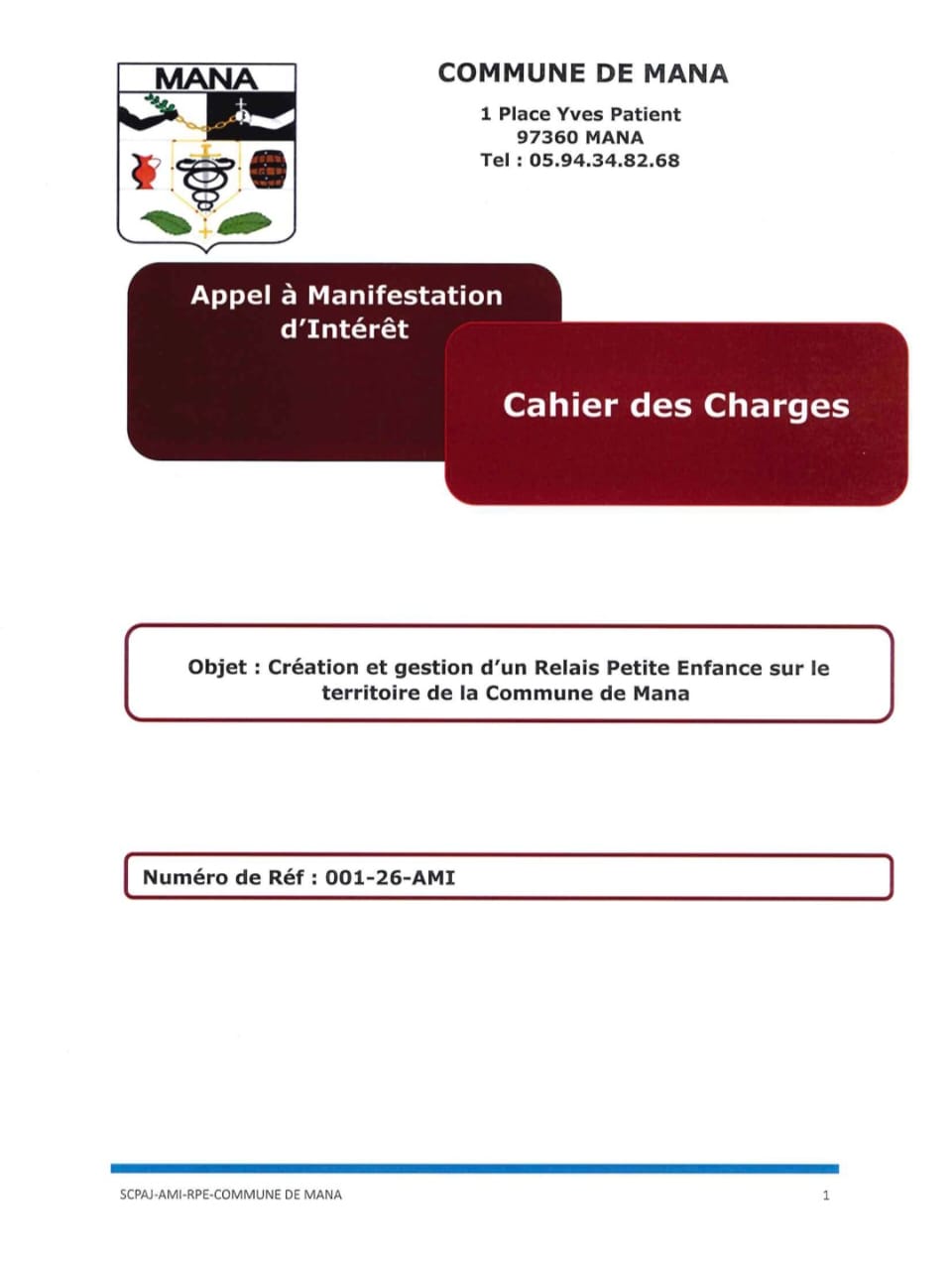 Dans le cadre de sa politique publique en faveur de la petite enfance et de l’accompagnement des familles, la Ville de Mana lance un Appel à Manifestation d’Intérêt (AMI) pour la création et/ou la gestion d’un Relais Petite Enfance (RPE) sur son territoire.