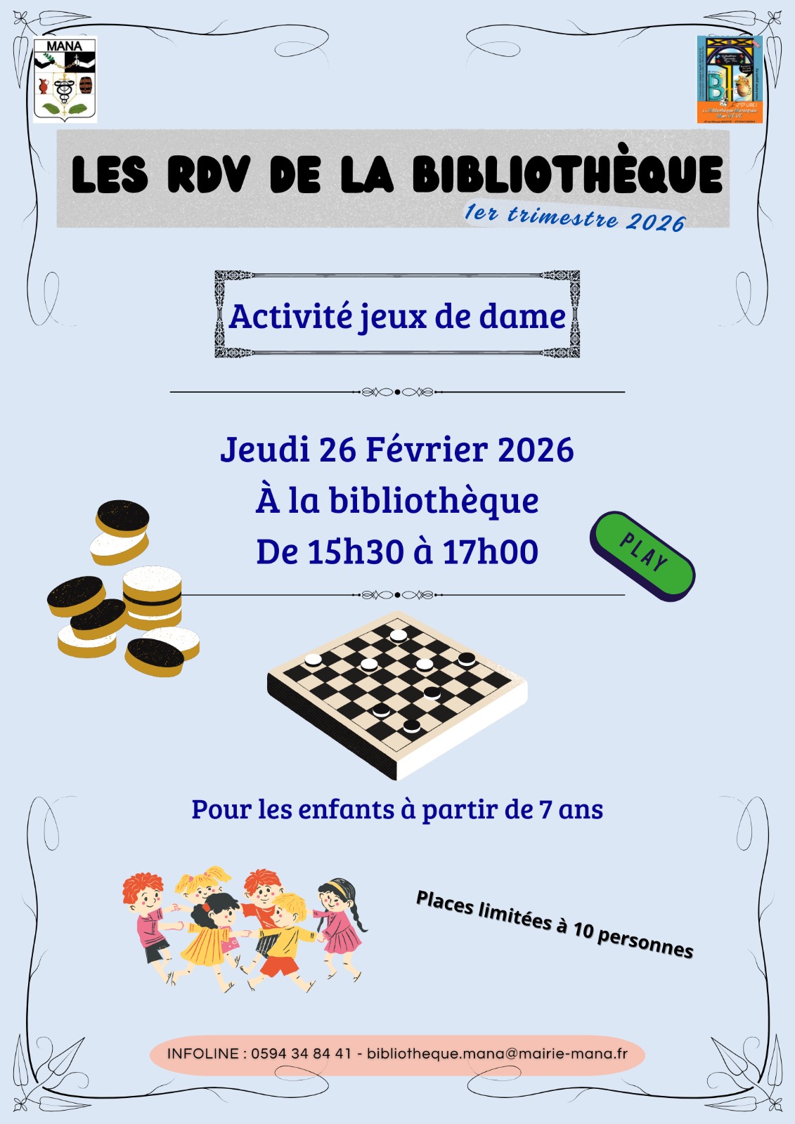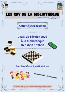 ACTIVITÉ JEUX DE DAME À LA BIBLIOTHÈQUE MUNICIPALE MAN VÉVÉ