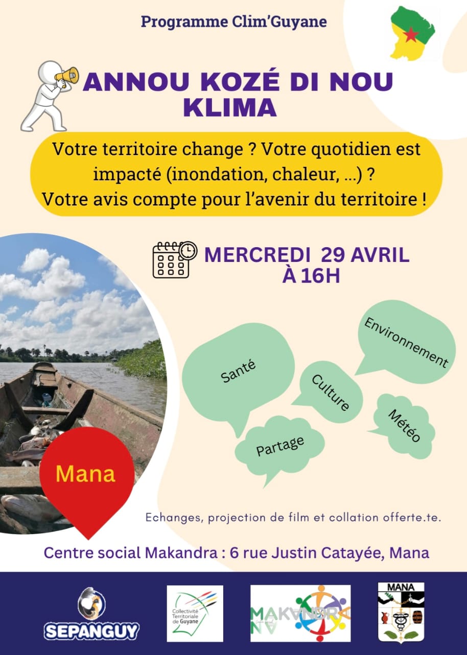 L’association SEPANGUY organise une rencontre avec les habitants pour la perception des effets et des risques du changement climatique sur le territoire, le mercredi 29 avril 2026 à 16h au Centre Social Makandra.