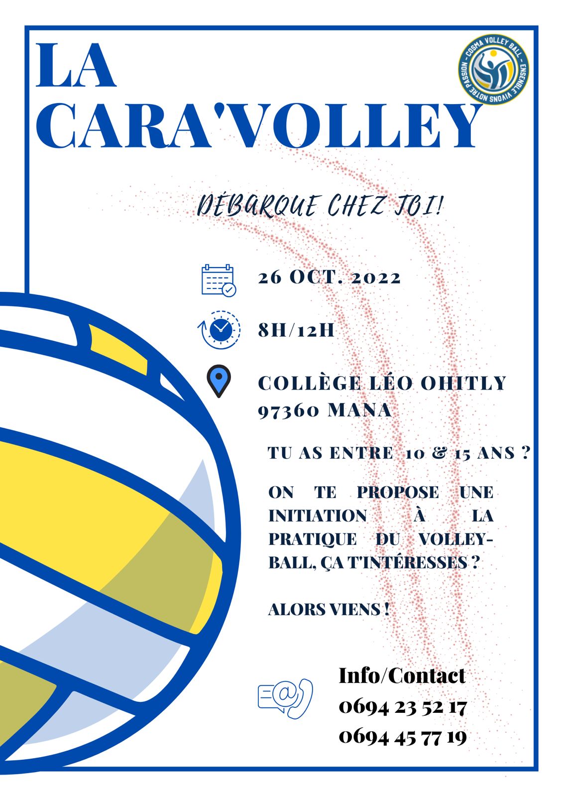 Le COSMA volley ball organise La Cara’Volley le mercredi 26 octobre 2022 de 8h à 12h au Collège Léo OTHILY de Mana.