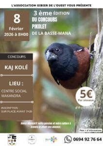 Le dimanche 08 février 2026, l’association Gibier de l’Ouest vous présente la 3ème édition du Concours Kaj Kolé de la Basse-Mana au Centre Social Makandra.