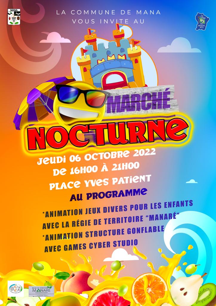 La Commune de Mana vous invite au marché nocturne du jeudi 06 octobre 2022 de 16h à 21h dans le respect des gestes barrières.