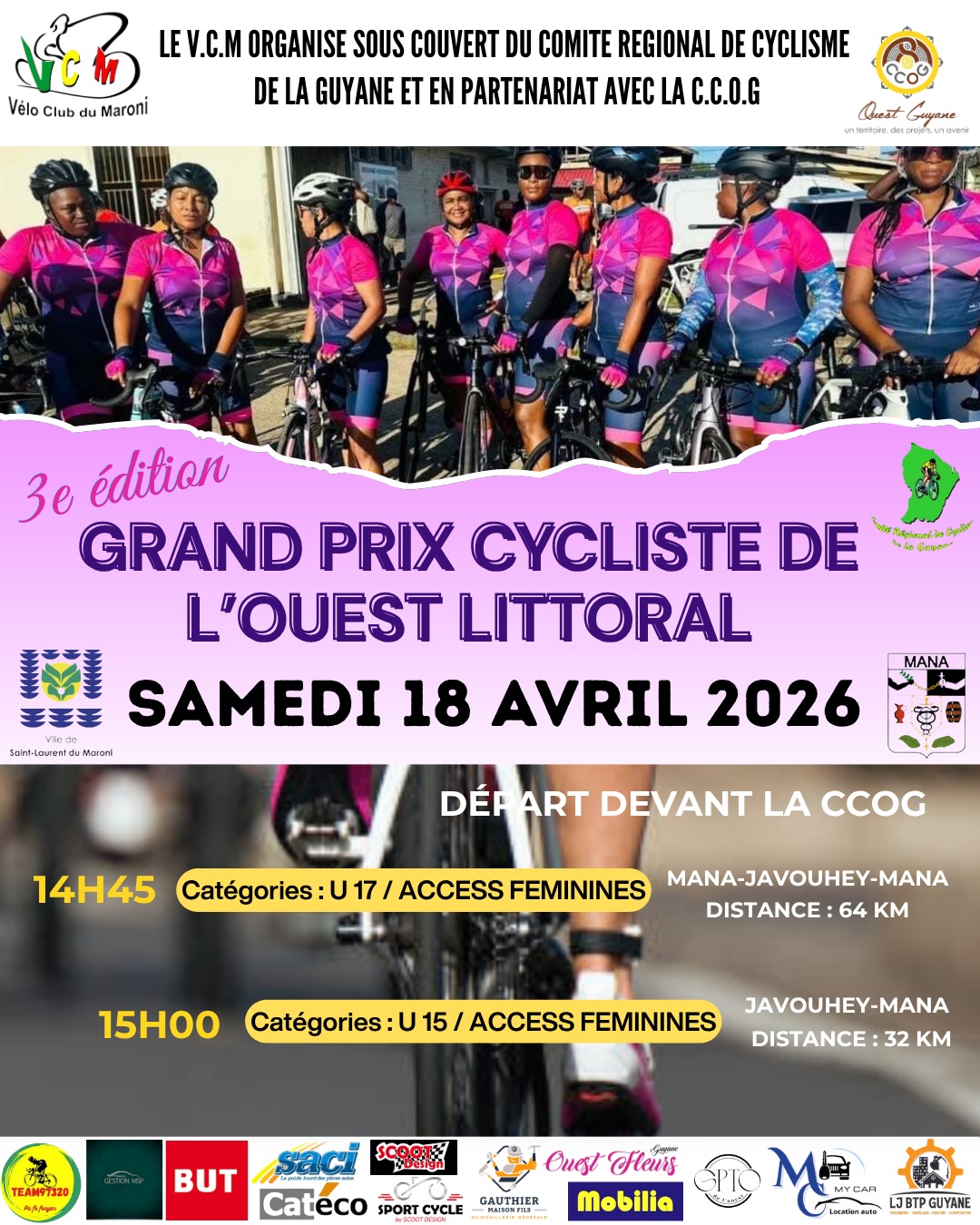 Le Vélo Club du Maroni vous donne rendez-vous pour la 3e édition du Grand Prix Cycliste de l’Ouest Littoral