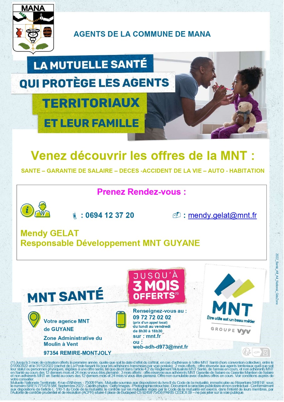Une permanence pour découvrir les offres de la MNT aura lieu le vendredi 28 octobre 2022 au Centre social MAKANDRA avec Mme Mendy GELAT, responsable Développement MNT GUYANE.