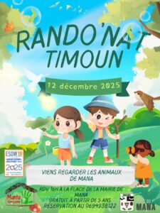 L’association Muntu Gwiyann organise une Rando’Nat Timoun, le 12 décembre 2025 à 16h00 à la mairie de Mana.