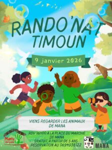 L’association Muntu Gwiyann organise une Rando’Nat Timoun, le 9 janvier 2026 à 16h00 à la place du marché de Mana.