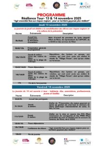 – Vendredi 14 novembre 2025 : journée ouverte au grand public, avec un focus particulier pour les élus, les agents des collectivités, les enseignants, les services de sécurité et de secours, acteurs essentiels de la gestion des risques naturels et technologiques. Cette journée se déroulera de 9h à 15h30.