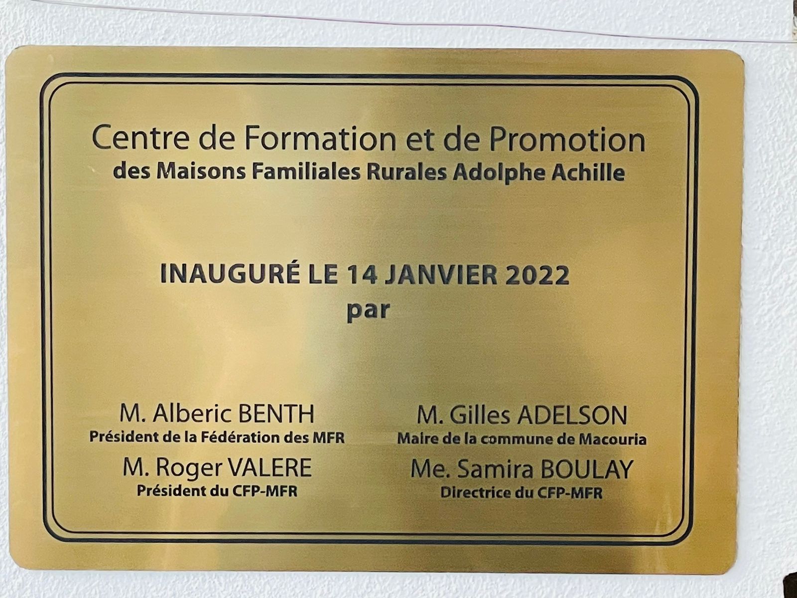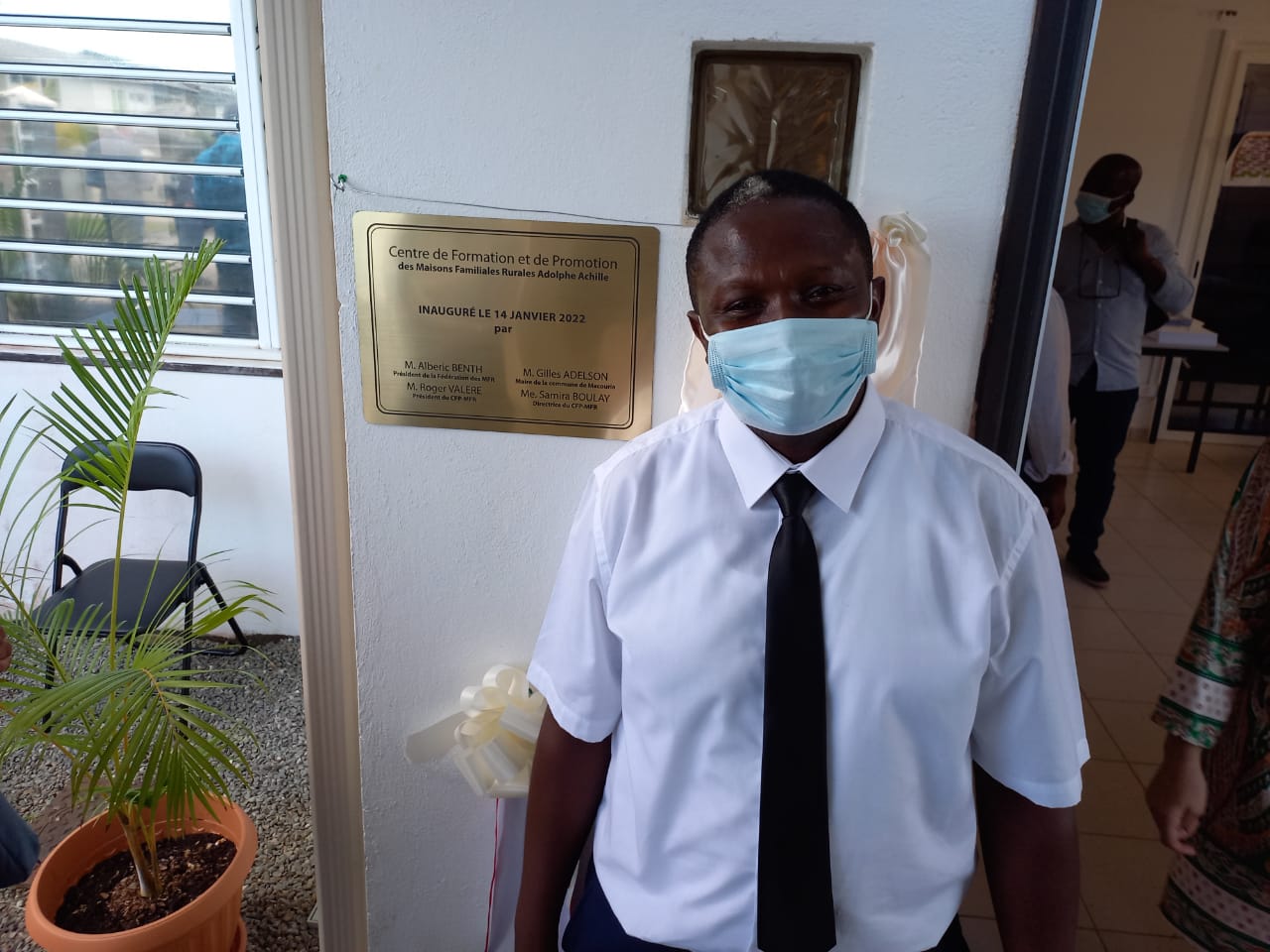 Le Président de la MFR de Mana, M.Albéric Benth et Président par intérim de la Fédération des MFR de Guyane a inauguré ce vendredi 14 janvier 2022 à Macouria le Centre de Formation et de Promotion des Maisons Familiales Rurales Adolphe ACHILE, en présence de M. Gilles ADELSON le Maire de Macouria, 1er vice-président et M. Roger VALERE président de la structure.