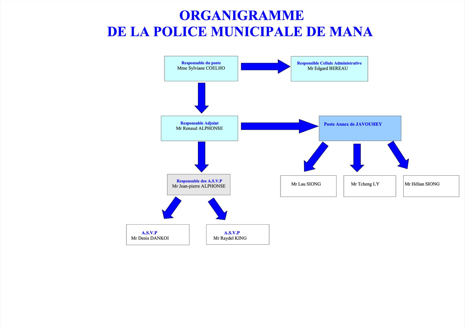 La Police Municipale de la Commune de Mana a été créée par délibération du Conseil Municipal en décembre 2002.