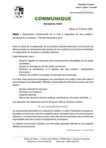 Ce recensement permettra à la collectivité d’établir un cadre d’attribution transparent, équitable et harmonisé, dont les modalités seront précisées dans une communication ultérieure. Les demandes reçues après cette date seront examinées dans la limite des disponibilités des lieux publics et équipements municipaux.