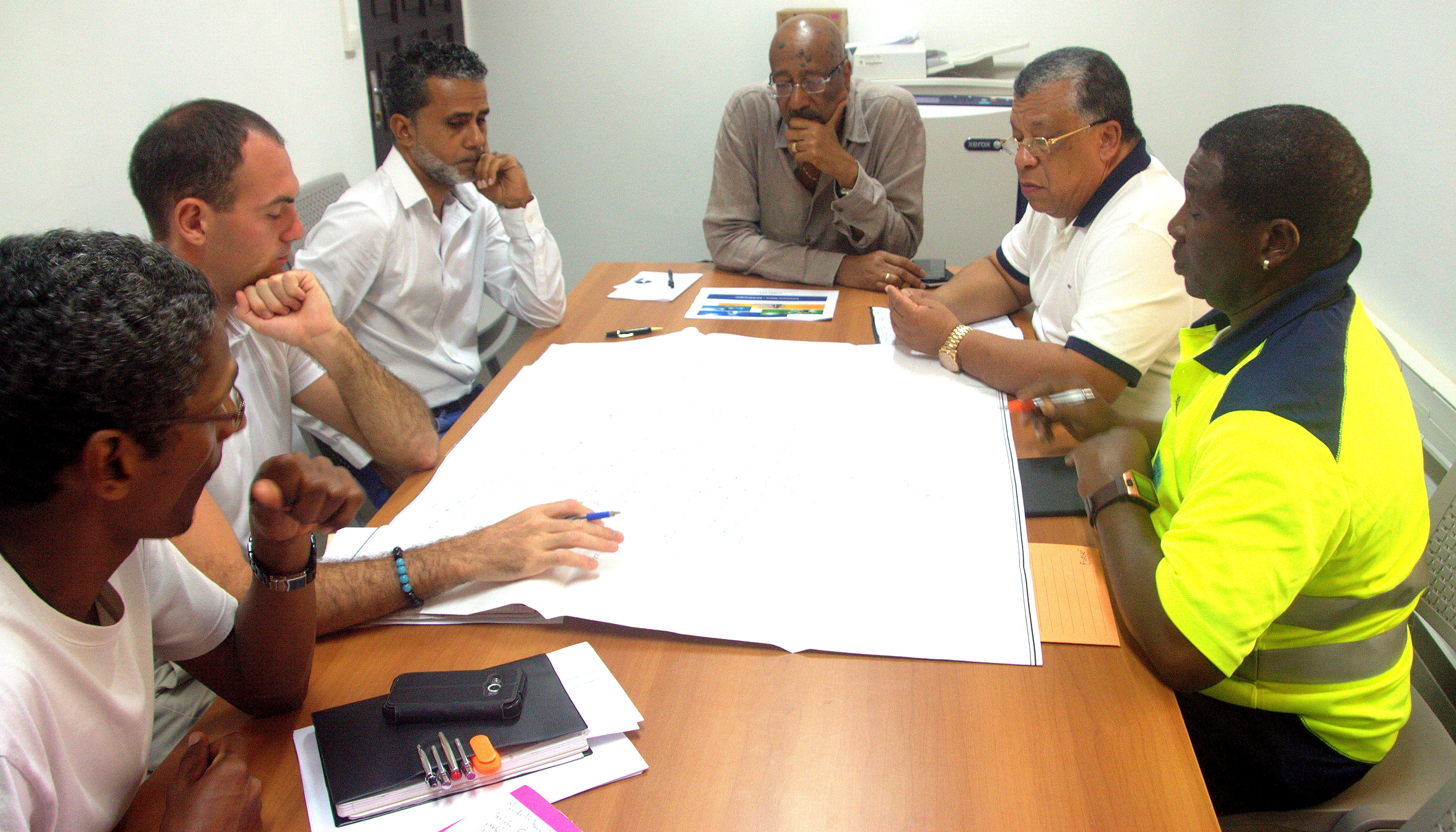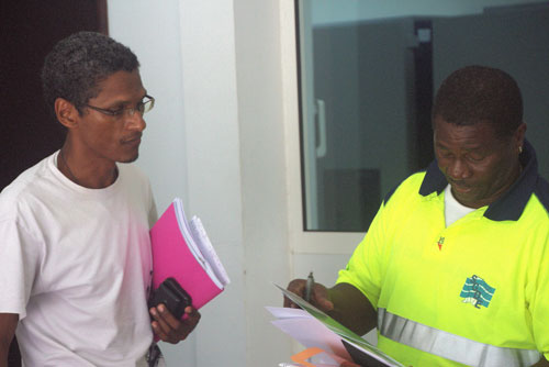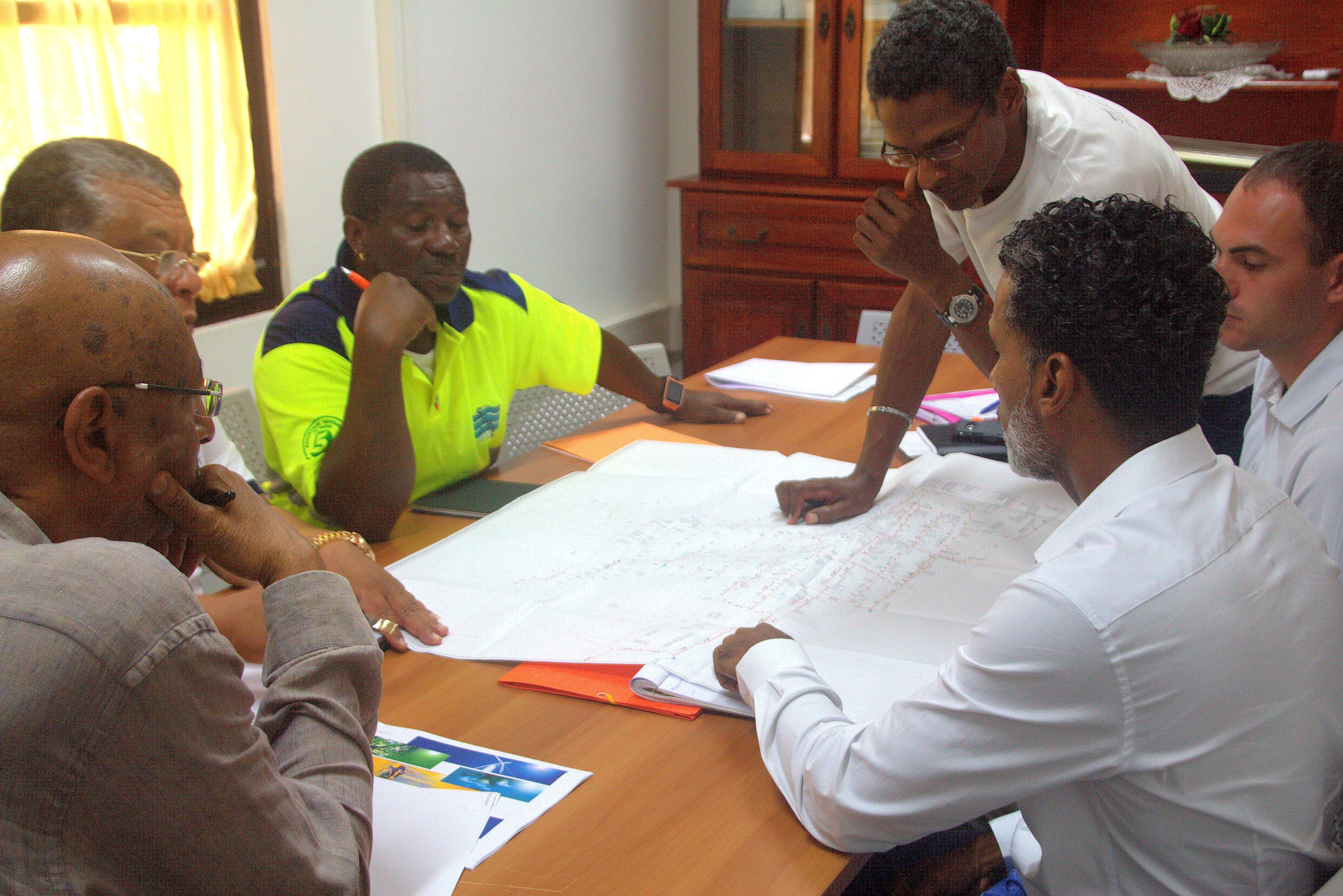 Le Sénateur Maire Georges PATIENT et son 2ème Adjoint Jean-Claude JADFARD rencontraient lors d’une réunion de travail ce mardi 13 juin 2017 à la Mairie de Mana, le Chef d’Agence Territoriale Ouest, de la Société Guyanaise des Eaux, Jocelyn PAN HUNG KUET.